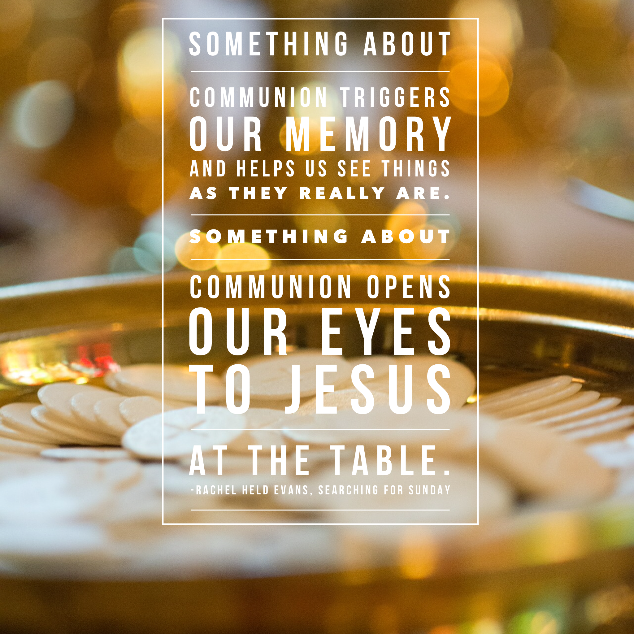 “Something about communion triggers our memory and helps us see things as they really are. Something about communion opens our eyes to see Jesus at the table.”