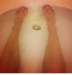 3. Sit down on the warm, empty tub with your favorite beverage nearby (I usually drink a cup of coffee.) Plug the tub.
